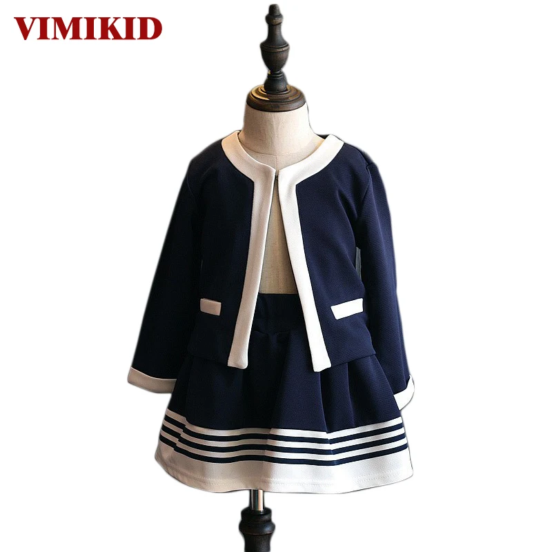 Best Price VIMIKID 2017 Autumn kids Clothes Girls Clothing Set Navy Blue Short Jacket and Skirts Suits Children Formal School Uniform