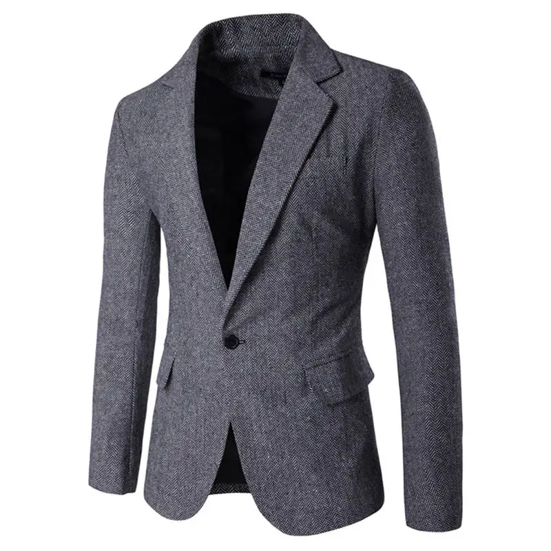 Cheap Price Blazer Men Suits Jacket Woolen Coat Single Button Herringbone Pattern Retro Tailor Made Warm Clothings 0450
