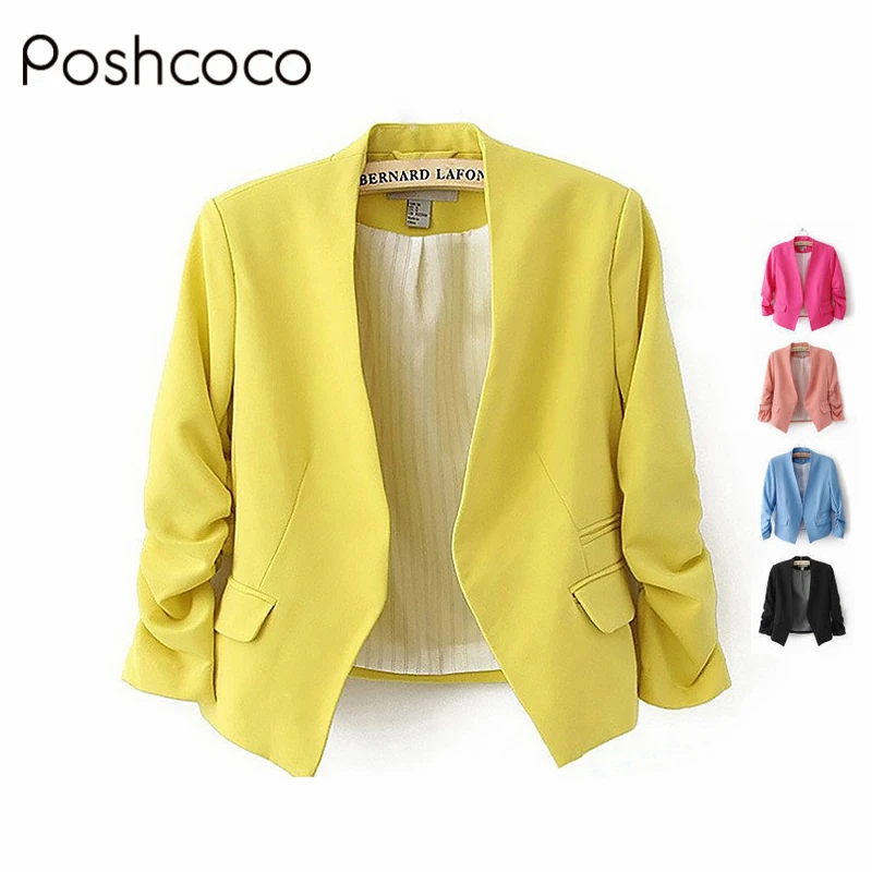 Good Poshcoco No Button Women Jackets 2017 Autumn Women's Fashion Candy Color Solid Suit Coat Jacket Chaquetas Mujer Casaco Feminino offers